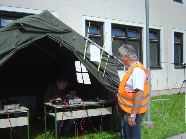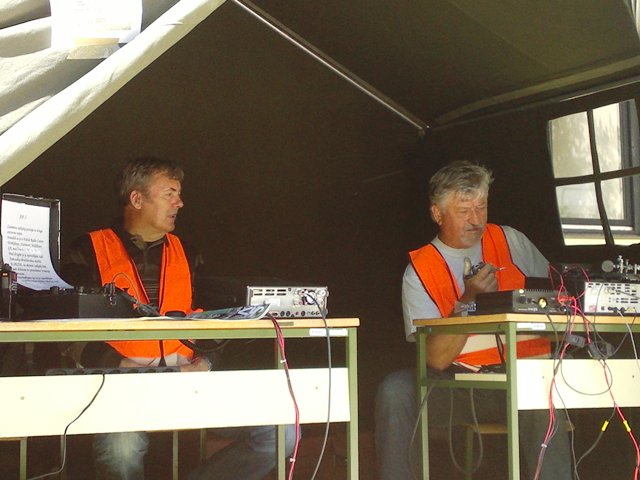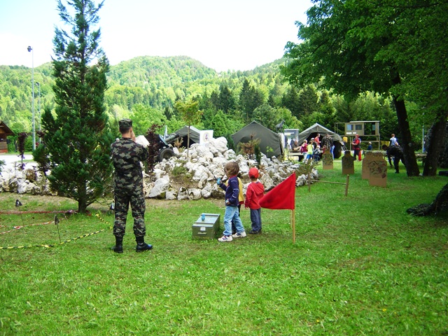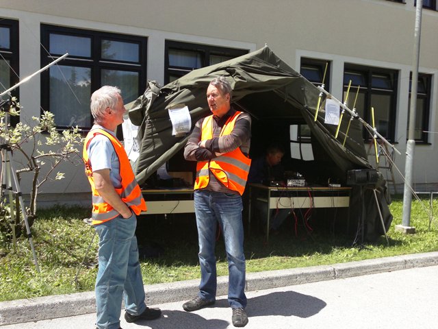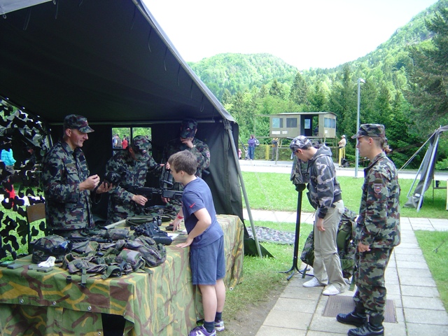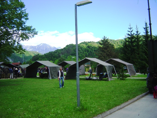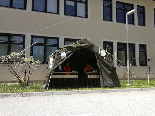 V soboto, 18.maja 2013 smo tako, kot že nekaj preteklih let, sodelovali na dnevu odprtih vrat Vojašnice Boštjana Kekca na Bohinjski Beli. Letos so nam šotor postavili na drugo mesto, kar smo zvedeli šele ob prihodu, tako, da so vnaprejšnji načrti, kako bomo napeli in postavili antene, padli v vodo. Na hitro smo pregledali na novo nastalo situacijo, se odločili in uspešno postavili in napeli antene. Vetru navkljub in našim zaskrbljenim pogledom nanje, so se dobro držale, samo Branetovo križno jagico za 2m in 70 cm je veter s stojalom vred vrgel po tleh in polomil en element. Bili smo QRV tako na 2m kot na KV (20m). Na 20m smo naredili kar nekaj lepih zvez, tako na telegrafiji, kot tudi v foniji. Na ogled smo postavili tudi nekaj naše opreme, seveda ni manjkala Janezova – S50JA jagica narejena iz metra, pa tudi moja ”vohunka” – radijska postaja iz druge svetovne vojne ne. Nekega pretiranega obiska letos ni bilo, mogoče ni bilo zadosti reklame oziroma objav v lokalnih medijih. Vojaki so razstavljali svojo opremo, manjkal ni niti helikopter, poleg ostalega pa tudi za nas zanimivo vozilo za zveze. Uprizorili so tudi taktično vajo. Pozabili pa seveda niso niti na pravi vojaški pasulj – njam…. No, pa, da še malo pogodrnjam glede pripravljenosti naših članic in članov sodelovati na takšnih dogodkih. Navkljub temu, da sem zadosti zgodaj objavil, da bomo sodelovali na tej prireditvi in zaprosil članstvo za sodelovanje, je bil odziv medel…. Zavedajmo se, da namesto nas ne bo nihče nič storil za naš klub in, če hočemo, da bo živel, moramo občasno tudi kaj postoriti zanj. Ker ni preostalo nič drugega, smo se tako kot po navadi zopet trudili: Brane – S51UJ, Marijan – S52TC, Zvone – S58OW in Cveto – S52KT. Seveda, pa ne smem pozabiti Vojka – S56JWS, ki nam je skoraj cel dan delal družbo. Obiskala sta nas pa tudi Sergeja – S59SW in Aleš – S56AW z naraščajem… Cveto – S52KT (Avtorja fotografij; Vojko in Cveto)