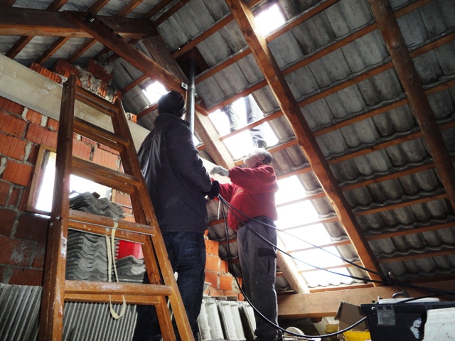 Lani, koncem leta, smo antene, ki so bile kar lepo število let prislonjene na podstrešju gasilskega doma, kjer v prvem nadstropju domuje tudi GZ, po načrtu, ki ga je po predhodnem posvetovanju, narisal Franc in je po njem izdelan tudi pocinkan nosilec (mast) v obliki črke U, montirali na streho, zamenjali stare kable in konektorje z novimi. Po strehi je kot maček spretno plezal Marijan in skupaj z Janezom sta zmontirala antene in jih seveda priklopila na vnaprej pripravljene kable v notranjosti nosilca. Midva s Francem pa sva opravila ostala dela na podstrešju, z objemkami sva pritrdila nosilec, napeljala kable, itd. Marijan je potem prevrtal zunanjo steno stavbe, pritrdil kanal in antenske kable speljal v notranjost stavbe, tam pa zopet po kanalu do komunikacijskega pulta. Vsa dela so, lahko rečem, gladko potekala, zahvaljujoč premišljenemu v naprej dogovorjenemu protokolu. Ohišje pulta razen čelne plošče je naredil mizar, ko so na novo opremljali prostor, tako, da smo se morali mi temu prilagoditi. Za čelno ploščo smo idejo, da bi bila kovinska (aluminij) takoj zavrgli, saj bi delovala v tem prostoru hladno in ne lepo. Odločili smo se za leseno (vezana plošča). Skupaj s sinom sva jo po predhodnim posvetovanju z ostalimi člani ekipe in moji zamisli izdelala pri nas doma. Sam pult pa sva opremila z izvrtinami za zračenje, zvočnike, antenske konektorje, pritrdilnimi elementi za akumulatorja, napajalnik, itd. Ko sva končala s tem, je sin polakiral čelno ploščo, jaz sem se pa potem lotil montaže radijskih postaj in ostalih elementov, ter električne in antenske povezave. Vgrajene so tri radijske postaje, avtoradio, zvočniki za dve postaji in avtoradio, procesorski polnilec akumulatorjev s funkcijo vzdrževanja, PSU1250 – 13,8V 50A napajalnik, dva akumulatorja 12V 20Ah, 12 voltni rele, fazni odklopnik in ostali drobni material. Deluje pa takole: preko napajalnika se napajajo tri radijske postaje in avtoradio, v primeru izpada električne napetosti rele odpusti in preklopi na napajanje iz akumulatorja, kar omogoča za približno en dan normalnega dela. Na stanje rezervnega napajanja pa opozarja rdeča utripajoča LED dioda (uporabil sem čip 555), ki se po vrnitvi električne napetosti (lahko tudi agregat) avtomatsko ugasne. Za dobro kondicijo in napolnjenost akumulatorjev pa nenehno skrbi procesorski polnilec. Kot vidite je pult lahko tudi mobilen, enostavno ga prenesejo, priklopijo anteno/e, vtaknejo napajalni kabel v električno vtičnico ali pa delajo nekaj časa samo na akumulatorsko napajanje, pač kakor nanese situacija. Napisal in plastificiral sem jim tudi navodila za uporabo. No, ko sem pa misli, da smo že gotovi, so pa še gasilci, ki domujejo v pritličju zgradbe potožili, da imajo dve postaji, ena od njih je v okvari, druga pa tudi ne dela najbolje. Po ogledu smo se zmenili, da jim bo GZ nabavila dve profi anteni, kateri sem naročil pri Trivalu. Z Janezom sva ju pričvrstila na podstrešju, namestili smo nova kabla H150, enega od dveh klasičnih napajalnikov iz starega pulta sem premestil v njihov pult, saj so prej napajali postajo z več kot 15m dolgim kablom speljanim do pulta v prvem nadstropju (padec napetosti na kablu!). Fantje so se potrudili in lepo obnovili pult, jaz pa sem še popravil pokvarjeno radijsko postajo in sedaj jim obe odlično delujeta v njihovo in moje zadovoljstvo. Za opravljeno delo smo dobili novo profesionalno radijsko postajo Motorola z vpisanimi frekvencami ZARE in anteno. Na strehi kluba bomo odstranili sedanji drog (mast) z vertikalno anteno za 2m/70cm/6m ter ga zamenjali z nosilcem v obliki črke U, na eno stran bomo namestili obstoječo anteno na drugo pa za sistem ZARE in ZARE+. Kot veste ima klub 20 članov, ki so pokazali pripadnost klubu in to, da smo radioamaterji vedno pripravljeni pomagat ljudem v stiski ter so se udeležili tečaja za uporabo sistema ZARE in ZARE+ v izvedbi Šolskega centra CZ Ig in v naši organizaciji. Zato sedaj posedujejo potrdila šolskega centra CZ iz Iga, o opravljenem tečaju za radijsko delo v sistemih ZARE in ZARE+. Pridobili bomo pa tudi pozivni znak, tako, da bomo lahko v primeru potrebe (bog ne daj) delali na naši radioamaterski mreži (ARON) in prenašali pridobljene podatke, sporočila, itd po sistemu ZARE direktno, recimo v ReCo Kranj. S tem bomo seveda pridobili na času in se izognili napakam, ki se rade pojavijo tam, kjer je več posrednikov. Seveda bo pa lahko po potrebi to tudi rezervna lokacija radijskih zvez za enote ZiR. Pripel sem še nekaj slikovnega materiala.