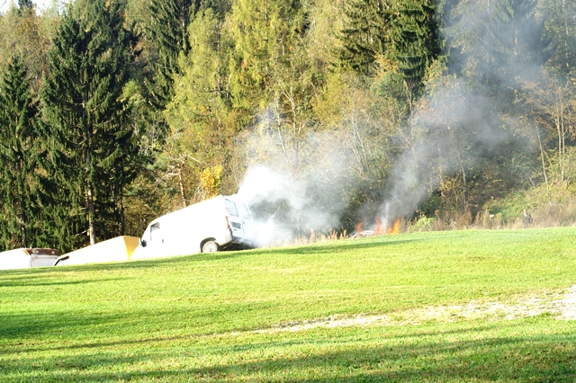Seveda sem dogajanje malo poslikal…. In še to, trije avtomobili (kombiji), ki gorijo in jih vidite postavljene v vrsti na nagnjenem terenu predstavljajo polomljen trup letala… 73 de Cveto – S52KT