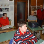 Danes, opss, saj je bilo že včeraj, ura je namreč že krepko čez polnoč, sem šel malo pogledat naše tečajnike, bodoče radioamaterke (!!) in radioamaterje. Seveda sem vzel fotoaparat s seboj Po besedah vodje tečaja Braneta – S51UJ lepo napredujejo, tako, da, če bo vse po sreči, bodo izpiti nekje v drugi polovici marca, seveda, če se nam bo uspelo tako dogovoriti z izpitno komisijo. No, kolikor sem lahko v času mojega obiska videl, tečajniki z zanimanjem spremljajo predavanje in jih velja pohvaliti, je pa res, da je bil predavatelj Slavko – S53XX, z načinom predavanja vreden poslušanja. Kot sem že v vabilu za tečaj zapisal, so si tematsko razdelili predavanja: Brane – S51UJ, Slavko – S53XX, Aleš – S56AW in Darko S57AX. Naj izkoristim priložnost in se jim tukaj javno zahvalim v imenu kluba, tečajnikov in mene osebno.